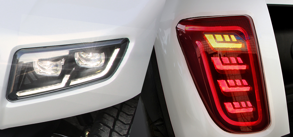 Enhance safety and visibility with our standard Full LED Lighting System, featuring powerful high beams, low beams, DRLs, turn signals, and brake lights. These energy-efficient LED golf cart lights deliver a 2-3 times wider field of vision than competitors, ensuring a brighter, worry-free ride after sundown with minimal battery drain.