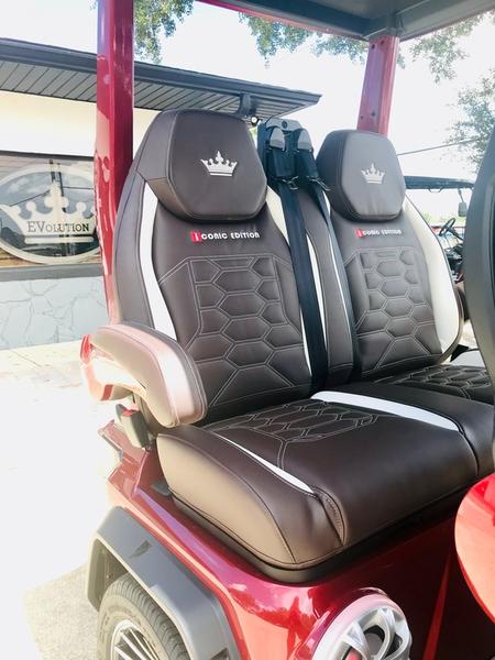 Prepare to be amazed by the 2025 Evolution D-Max GT4. This is not just a golf cart; it is a meticulously engineered luxury electric vehicle designed to deliver an experience without equal. Finished in a head-turning Flamenco Red and riding on massive 16-inch aluminum wheels, the D-Max GT4 combines show-stopping aesthetics with an astonishing suite of technology that places it in a class of its own.