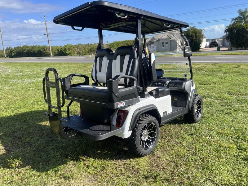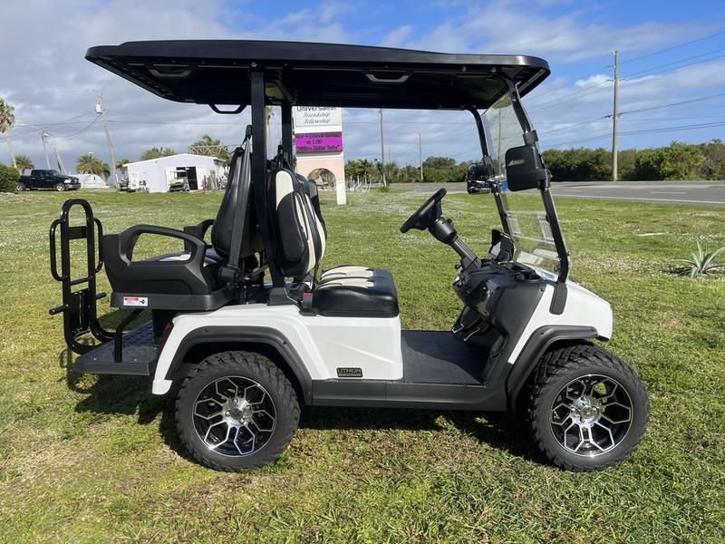 The 2025 Evolution D5 Ranger 2+2 represents a new era of personal transportation, combining sophisticated style with advanced technology. Finished in a brilliant Pearl White, this 4-passenger cart is designed for those who demand excellence and comfort. From its sleek, automotive-inspired lines to its silent and powerful electric motor, every element of the D5 Ranger is crafted to enhance your driving experience.
