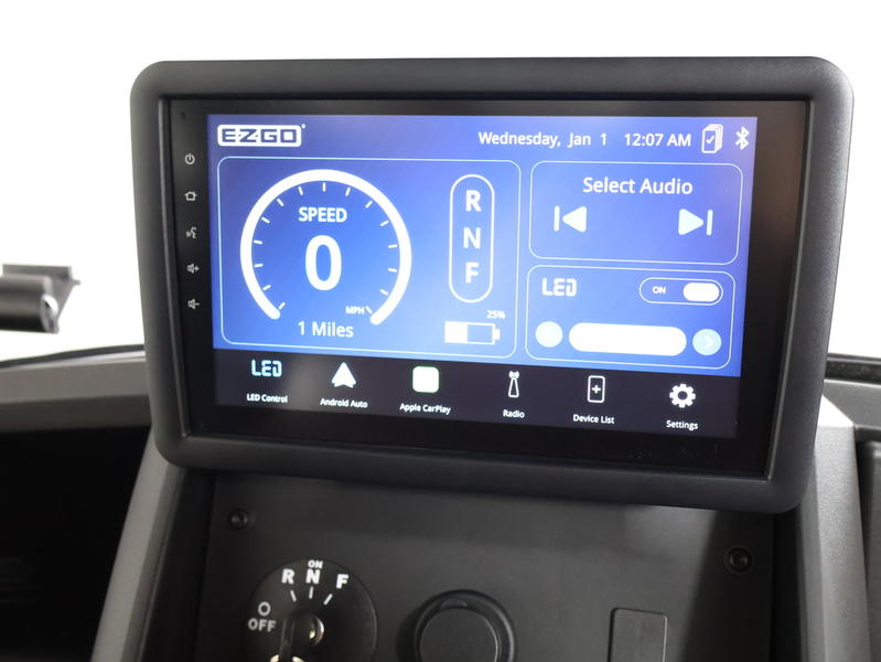 Luxury “L” Trim Comfort: Features E-Z-GO’s Luxury High-Back Seating in exclusive 2026 colors like Midnight Black, Amarillo Brown, or Tundra Grey. These seats offer sculpted ergonomics and folding armrests for all-day comfort.