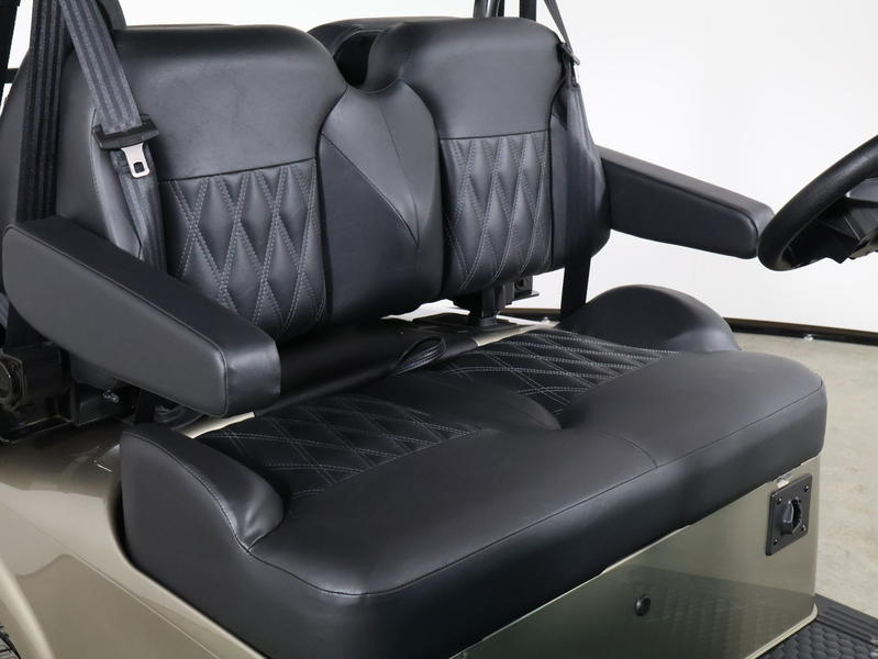 Luxury “L” Trim Comfort: Features E-Z-GO’s Luxury High-Back Seating in exclusive 2026 colors like Midnight Black, Amarillo Brown, or Tundra Grey. These seats offer sculpted ergonomics and folding armrests for all-day comfort.